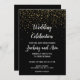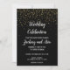 Este Dourado Confetti sobre o Convite para Casamento de Celebração de Casamento Negra é perfeito para um casamento simples e elegante. O design apresenta um falso confete dourado sobre fundo preto com caligrafia branca clássica.