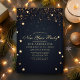 Este elegante convite de festas de Ano Novo apresenta estrelas de confete ouro sobre um fundo azul marinho. Personalize este design personalizado com os seus próprios detalhes.