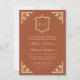 Convites Dourada Crest Monograma Código QR Terracotta Casam