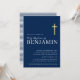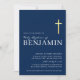 Convites DOURADA CRUZ sagrada batismo sagrado moderno azul