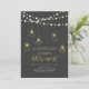 Celebre seu dia especial com este convite de festas na moda moderno de aposentadoria. Este sofisticado design apresenta tipografia de na moda, belas luzes de cordas e gráficos de fixação de luz geométrica na textura dourada. Você pode personalizar o texto e a cor do plano de fundo. Convidado perfeito para uma celebração moderna de ouro e cinza.
