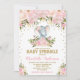 Convite para bebê de Elefante, com elegante cor-de-rosa e cinzas, flores de aquarela e confete de ouro