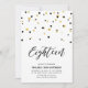 Comemore seu dia especial com este simples convite de aniversário 18º. Este design apresenta um script de na moda com letra "18" com um confete em forma de hexágono com uma combinação de cores preto e dourado. Mais designs disponíveis no meu compro BaraBomDesign.