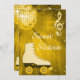 As raparigas personalizadas, elegantes e personalidades Doce Dezesseis convites para comemorações de festas de aniversário. Belo ouro e modelos pretos de dois lados para os convites de dezesseis / dezesseis anos / dezesseis anos de idade com uma bola de espelho retrovisor de disco funky, skates de roletas de ouro e uma imagem impressa glamourosa / rochas de diamantes, sequências, faíscas de joias, notas musicais reluzentes / notas musicais sobre um ouro clássico com luzes brancas e fundo de faíscas. Chic, fofo, giro, convites modernos com cores modernas e modernas. Estes convites legal, ranchosos, na moda, sofisticados e bonito são decorados/impressos em ambos os lados. Convites perfeitos para festas de janto e patinagem de rolos/derby de roletes. Placa gráfica do skate Roller por Lilly Bimble. NOTA: todos os convites no Zazzle têm imagens impressas planas. Se precisar de assistência para personalizar seu produto, entre em contato comigo através da minha loja e eu ficarei feliz em ajudar.