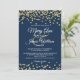 Convites Dourada Faux Glitter Confetti Elegante Marinho de