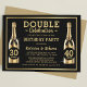 Celebração dupla significa o dobro da diversão! Convide seus convidados para a sua festa de aniversário conjunta com esses fabulosos convites preto e ouro. Apresentando uma borda dourada, duas garrafas de champanhe douradas e uma modelo bolsa mensageifesta de aniversario elegante que é fácil de personalizar.