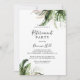 Este convite de festas de aposentadoria tropical de ouro é perfeito para uma aposentadoria moderna. O design apresenta ouro de aquarela pintada à mão e palmeiras verdes e folhas de bananeiras com flores cor-de-rosa bem organizadas em belos buquês.