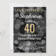 Celebrar uma aniversário de 40 anos divertida em estilo com este convite festivo e divertido de bolhas de confetti, com sotaque dourado, perfeito para um convite de festas planejado ou surpresa. Personalize as cores clicando em "personalizar mais" e alterando a cor de fundo frontal e traseira, bem como as cores do texto. Anuncie o grande aniversário de quarenta marcos para ele ou para ela com esta única carta moderna de quarenta. Convide todos, família e amigos para passear pela festa de quadragésimo ou pessoalmente.