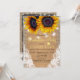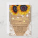 Modelo de convite para na moda de festa de formatura de campo russo para bétula sobre fundo de burlap faux bege com um grande buquê de girassóis de ouro amarelo, cordas de luzes brilhantes brancas e rendas. +++++++++++++++ Fácil de personalizar com seus detalhes e foto personalizada! ++++++++++++++++ O convite é adequado para festas de formatura de jardim ao ar livre/quintais rústicos.