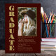 Um convite à festa de formatura de fotos personalizada, de burgundy e ouro, moderno minimalista.