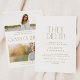 Este moderno convite à dupla festa de formatura de fotos de ouro é perfeito para uma festa de formando moderna. A design apresenta uma elegante tipografia de vassoura com um toque de estilo sofisticado em ouro e branco minimalistas. Jogue uma festa por 2 formandos. Personalize as costas com uma foto de cada formando, sua escola e ano de aula.