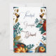 Uau, seus convidados com este belo convite de festas de janto de Ação de Graças. O design apresenta trabalho de arte botânico azul, verde, aves azuis, flora, abóboras de ouro e cores de outono. O verso tem uma citação - "Graças, Grata, Abençoada" e design correspondente. O "Texto" pode ser facilmente personalizado com suas palavras e tipografia.