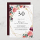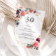 Este convite de festas floral tropical de ouro é perfeito para uma simples festa de aniversário. As design ilustrações ilustram as flores brancas, cor-de-rosa, esbranquiçadas, arrojadas e elegantes roxas, organizadas em belos buquês com folhagem verde, enfeitando um quadro geométrico dourado.