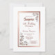 Um elegante rosa dourado/cobre fez fronteira com uma surpresa floral de 50.º aniversário com convite de festas de folhagem floral de ouro quente nos cantos diagonais e texto burgundy.
