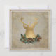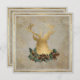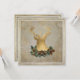Folha de ouro EXQUISITA (feita a partir de uma verdadeira fotografia de folhas de ouro) silhueta de um veado selvagem com galhantes e uma coroa de cones de pinheiro ouro sobre uma vintage efêmera francesa angústia antiga de fundo envelhecida. Uma segunda borda de folha de ouro descreve o fundo do óleo branco macio pintado. No verso está o texto do seu convite de festas de Natal e uma versão menor da cabeça do veado e os rosetas e rosetas decorativos da impressora gravados. Moderno, porém clássico, elegante e perfeito para um clássico evento de férias de inverno.