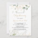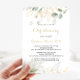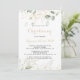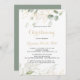 Este convite para batizar de caligrafia verde-dourada é perfeito para batismo ou batismo de batismo. Este design artístico apresenta a aquarela desenhada à mão, ouro e folhagem verde, inspirando beleza natural.