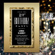 Convide sua família e amigos com este convite de festas na moda preto e aniversário de 21 anos dourado.