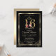 Dourada tiara brilhante, moldura dourada e convite de aniversário de borda floral Sweet 16.