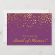 É uma reluz dourada com fundo roxo que daria uma aparência elegante ao dizer Madrinha de casamento à sua noiva. Isto é melhor para a noiva, que adora cores e bolinhas douradas. Uma maneira muito divertida de pedir às suas garotas favoritas que façam parte da sua festa de noiva.