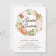 Convide convidados para o seu evento com este convite para brunch de outono personalizável. Apresenta uma camada floral de aquarela de abóboras, flores de hydrangea, peonias, rosas e folhas de outono com sotaques de ouro falso. Este convite para abóbora é perfeito para chás de panela de outono.