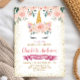 Dourada Glitter Teal Peach Floral Unicorn Convite de Aniversário