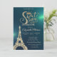 Convites Dourada Glitter Tiara, Ouros Torre Eiffel Verde