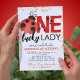 Dourada Glitter Um Sortudo Lady Watercolor Ladybug Convites de festas de aniversários Duplos De Lado (Inclui Envelopes). Ou disponível para download digital. Uma bela e doce aquarela Ladybug apareceu em um fundo branco. Inclui cores: vermelho, preto e branco