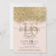 Convites Dourada Luminosa Rosa Confetti Sweet 16