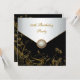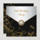Sobreposição de flores pretas e douradas com joias cor de pérolas com cinquenta convite de aniversário da mulher.