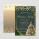 Árvore de Natal de ouro elegante e confete sobre fundo verde. Estes belos convites de Natal são perfeitos para convites de festas de janto de Natal, convites para troca de presentes de Natal, angariadores de fundos de Natal, convites para bolas de férias e outros eventos realizados durante o mês de dezembro. Use apenas os campos modelo para adicionar suas próprias informações de evento.