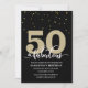 Preto Elegante com brilho dourado 50 e Convite de aniversário fabuloso com sotaques de brilho. Adicione os detalhes da sua festa usando nosso modelo fácil.