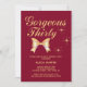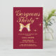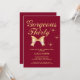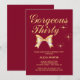 Um elegante convite de aniversário de 30 anos com uma fita de ouro fofinha e a tipografia moderna "Trinta e Vestidos", num fundo de burgundy.