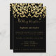 Dourada Confetti Glitter no Convite à Recepção de casamento de Fundo Preto.