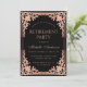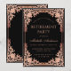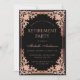 Esse elegante convite de festas preto-e-rosa (ouro-rosa) de aposentadoria com ar vintage, recomendado para uma mulher, tem um quadro de folha de ouro rosa ornamentado (faux) com decorações barrocas elegantes sobre fundo preto. O nome está escrito em uma caligrafia elegante. Todo texto pode ser personalizado e tem uma cor rosa semelhante ao quadro ouro rosa. A safra, quadro de ornamentado, baseia-se numa antiga ligação francesa ao cobrir do livro, de Georges Mercier (1885-1939) - Madame de Maupin, por Teophile Gautier, edição de 1911, agora no dominio público.
