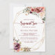 Este sorvete floral geométrico de ouro, rústico, e ver convite é perfeito para um simples encontro com a festa do bebê. A design apresenta flores de aquarela, cor-de-rosa e borbulhante, com folhas verdes em fundo castanho manchado.