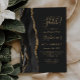 Esta elegante surpresa do 50º convite de aniversário apresenta uma aquarela preta, borda agitada, aparada com falso brilho dourado. O texto personalizável combina manuscrito dourado, fontes em copperplate e itálico em um fundo preto de slate. Edite o nome, a idade e outros detalhes. O verso apresenta um design de agate preto e dourado correspondente.