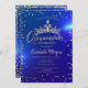 Convites Dourada Tiara Diamantes Azul Quinceañera