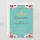 Convites Dourada Tiara, Diamantes Flores Mint Green Quincea