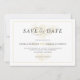 Simples e elegante salvação da data convite de casamento com tons de ouro, buquê floral como marca d'água dourada. Acentos de tipografia de scripts elegantes. Fundo branco e cinza reversível.