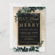 Coma, beba e seja feliz! Uma tipografia de ouro moderna, chica e elegante convite de festas de Natal verde-aquoso floral com folhagem de folha de cor aquosa pintada manualmente num gradiente de ouro amarelo-chico com neve branca e flocos de neve. Perfeito para o Natal ou casamentos.