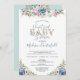 Se vocês não podem se reunir, celebre a futura mãe em um chá de fraldas virtual online utilizando Skype, Zoom, Facebook ou outra conexão com a internet. O convite inclui os florais em azul-marinho, cor-de-água e cor-de-rosa, acentuados com folhas de ouro brilhante. O título BABY no CHÁ DE FRALDAS VIRTUAL é "glitter" dourado e o texto e a data do guião manuscrito chic está em lacuna, ideal para um chá de fraldas neutro em termos de gênero. Entre em contato com o designer por meio do Zazzle Chat ou makeitaboutyoustore@gmail.com se você quiser que este design seja modificado, em outro produto ou quiser coordenar itens.