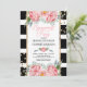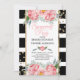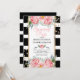 Convites personalizados de festa de noivado com listras pretas e brancas e lindas flores cor-de-água rosa - decores de peônias.