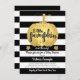 Pequenos convites para bebês de abóbora com bonito abóbora de ouro e folhas sobre fundo de listras preto e branco. Você pode personalizar facilmente estes pequenos convites para chuveiros de bebê de abóbora dourados para seu evento simplesmente adicionando seus detalhes. Este é um design impresso sem brilho real, folha de alumínio, etc.
