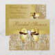 Convites de chá de panela de ouro personalizados elegantes com um lindo padrão de sequências digitais de ouro brilhante, um arco digital de ouro brilhante e uma fita e uma joia bonito de bling de diamante digital.Esses convites glamourosos clássicos são decorados de ambos os lados. Lindos, bonitos, quentes, modernos convites. Observe que: Todos os convites no Zazzle têm imagens impressas em formato simples.O texto, a fonte e a cor da fonte podem ser personalizados. Se precisar de ajuda para personalizar seu produto, entre em contato comigo pela loja. Ficarei feliz em ajudar.