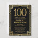 Este fabuloso convite de festas surpresa de 100 anos, preto e ouro, com o número 100 em ouro, rodeado por um desenho de arte em ouro na frente e sua foto favorita do convidado de honra em preto e branco no verso seria perfeita para pedir às pessoas que se juntassem a vocês enquanto celebram o homem no aniversário de 100 anos de sua vida. É tradicional e clássico enquanto é fresco, moderno e contemporâneo. Para ver seus convites exclusivos, selecione "Personalizar este modelo" e digite suas informações e carregue uma foto. Os modelos irão tornar a sua foto preto e branco automaticamente. É super fácil!