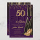 Convites Dourado Aniversário do Elegante Roxo 50 Fabuloso