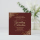 Este belo convite de casamento apresenta um design simples, mas elegante, de texto em dourado sobre um fundo marrom-chocolate ou castanho-avermelhado com bordas florais em folha falsa dourada. Dê as boas-vindas aos seus convidados para compartilhar o dia especial da sua celebração de casamento com esses convites lindos que apresentam texto em dourado. Um casamento é uma celebração de amor, amigos e familiares que acontece uma vez na vida. Faça da sua celebração nupcial algo verdadeiramente memorável com esses convites bonitos e elegantes. Este convite é totalmente personalizável, para que você possa alterar o texto de acordo com a sua situação e necessidades.
