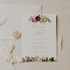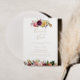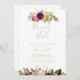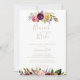 Este brunch floral de ouro com o convite ao chá da noiva é perfeito para um chá de casamento moderno. O design apresenta penas castanhas pintadas à mão, cor amarela-boho, branca, púrpura, rosa, pincel, flores borboletas e bagas azuis perfeitamente organizadas em belos buquês.