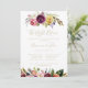 Esta noite floral de ouro antes do convite de janto de ensaio é perfeita para um evento moderno. O design apresenta penas castanhas pintadas à mão, cor amarela-boho, branca, púrpura, rosa, pincel, flores borboletas e bagas azuis perfeitamente organizadas em belos buquês.