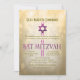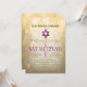 Convite de festas de Bat Mitzvah em cores claras de boque dourado.